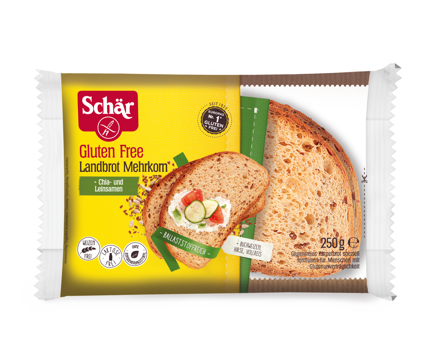 Gluteeniton viipaleleipä, joka sisältää paljon terveellisiä jyviä ja kuituja. Sisältää pellavansiemeniä, auringonkukansiemeniä sekä chiasiemeniä. Erinomainen leipävaihtoehto erilaisiin täytettyihin voileipiin. Ei sisällä vehnätärkkelystä, maitoa tai kananmunaa. Säilöntäaineeton.