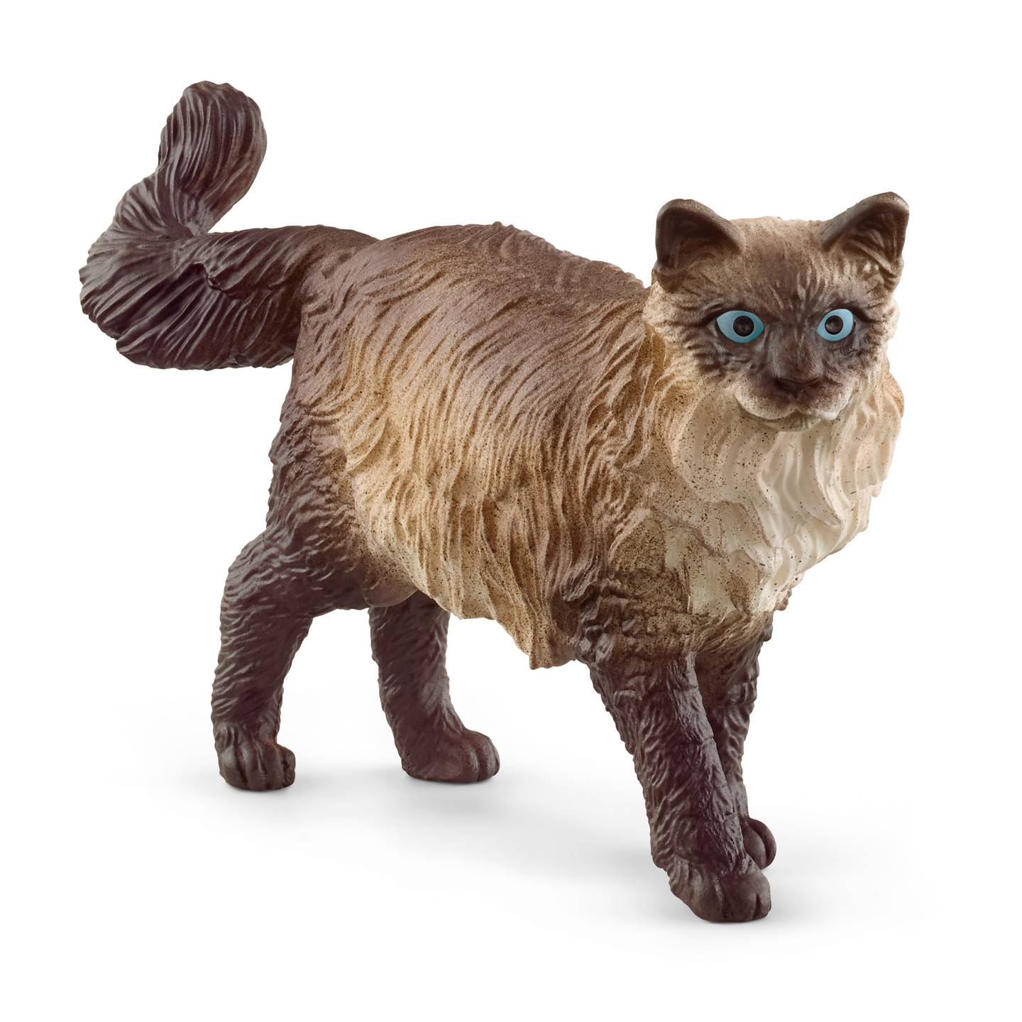 Pelkäätkö korkeita paikkoja? schleich® FARM WORLDin ragdollimme ei pelkää niitä. Se ei ole vain erittäin suloinen, vaan myös taidokas akrobaatti. Sen karvainen häntä auttaa sitä tasapainoilemaan vaivattomasti FARM WORLDin puissa tai myslikulhoissa. Myös suurimman kissarodun silkkinen turkki vetää katseet puoleensa. Se saa sen näyttämään vieläkin elegantimmalta, kun se hyppää taitavasti kerrossängystä kirjahyllyn päälle päätyäkseen sieltä käsivarsillesi. Pelkkä katsominenkin aiheuttaa huimausta!
