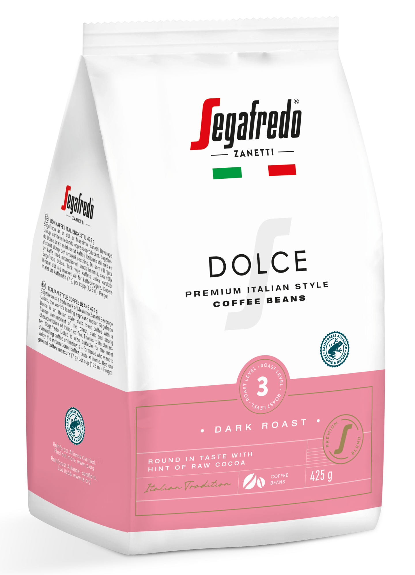 Segafredo Dolce on italialaistyyppinen, tummapaahtoinen suodatinkahvi, jonka maku mukailee italialaisen kahvin särmikkäitä, paahteisia ja vahvoja ominaispiirteitä. Segafredo Dolcen makuprofiili on pyöreän täyteläinen ja siitä löytyy myös hivenen raakakaakaon aromeita. Kahvin herkullinen blendi on yhdistelmä tarkkaan valittuja, RAC-sertifioituja raakakahvilajikkeita Hondurasista, Brasiliasta sekä Vietnamista. Kahvin paahtoaste on 3 eli tumma.