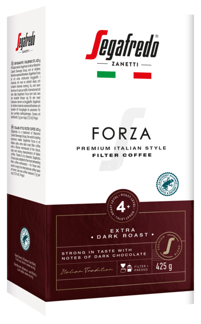 Segafredo on Massimo Zanetti Beverage Groupin, maailman johtavan espressovalmistajan, tuotemerkki. Segafredo Forza on italialaistyyppinen, erittäin tummapaahtoinen suodatinkahvi, jonka maku mukailee italialaisen kahvin särmikkäitä, paahteisia ja vahvoja ominaispiirteitä. Kahvi on RAC-sertifioitu ja sen paahtoaste on 4+. Laadukkaat Segafredo-suodatinkahvit ovat vastuullisuussertifioituja ja vastaavat tämän päivän kahvikuluttajan makutoiveisiin.
