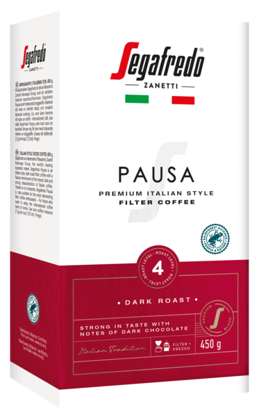 Segafredo Pausa on huippulaatuinen, särmikäs, tumma ja paahteinen suodatinkahvi. Sen erityisen vahva luonne ja monisävyinen maku sopii vahvemman ja luonteikkaamman suodatinkahvin ystävälle. Segafredo Pausan tarkkaan valitut kahvipavut ovat peräisin Itä-Afrikasta sekä Väli- ja Etelä-Amerikasta. Kahvin paahtoaste on 4. Laadukkaat Segafredo-suodatinkahvit ovat vastuullisuussertifioituja ja vastaavat tämän päivän kahvikuluttajan makutoiveisiin. Segafredo-suodatinkahvit pakataan nyt ympäristöystävällisempään pakkaukseen. Pakkausmateriaalia on vähennetty 30 %.