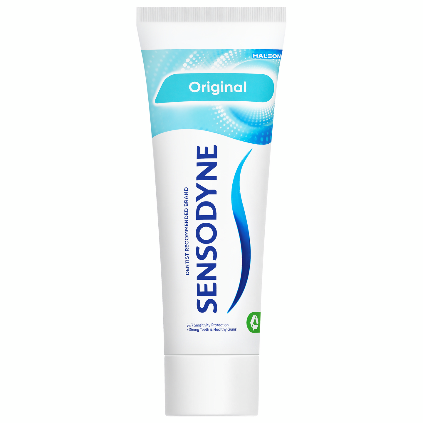 Sensodyne Original on päivittäiseen käyttöön tarkoitettu hammastahna, joka kahdesti päivässä käytettynä suojaa vihlontaa vastaan ja lievittää vihlontaa kliinisesti osoitetusti. Kahdesti päivässä käytettynä Sensodyne Original -hammastahna antaa ympärivuorokautista suojaa vihlontaa vastaa ja puhdistaa tehokkaasti. Sisältää fluoria, joka vahvistaa hammaskiillettä ja ehkäisee reikiintymistä. Sensodyne Original -tahnassa on raikas mintun maku. Käytä Sensodyne Original -hammastahnaa kahdesti päivässä, sillä se: • Antaa ympärivuorokautista suojaa vihlontaa vastaan • Poistaa plakkia ja sisältää reikiintymistä ehkäisevää fluoria • On mintunmakuinen ja tekee suusta puhtaan ja raikkaan tuntuisen.