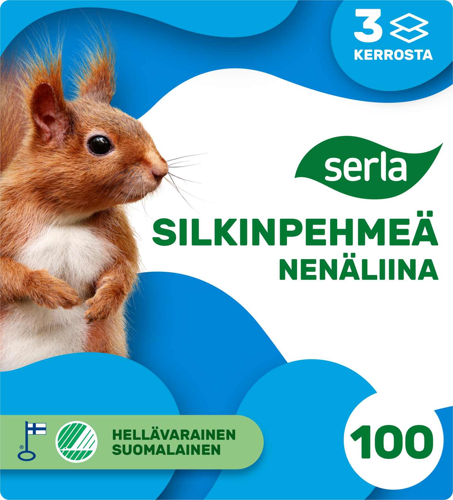 Serla Silkinpehmeä nenäliina on pehmeä ja hellävarainen niin isolle kuin pienemmällekin nenälle. Korkealaatuinen nenäliina on valmistettu puhtaasta suomalaisesta ensikuidusta yhteistyössä Astma ja Allergialiiton kanssa. Serla Silkinpehmeä valmistetaan paikallisesti Mäntän paperitehtaalla.