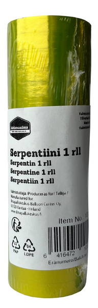 Raikas limenvihreä serpentiini sopii kaikkiin juhliin. Pakkaus sisältää 1 rullan.