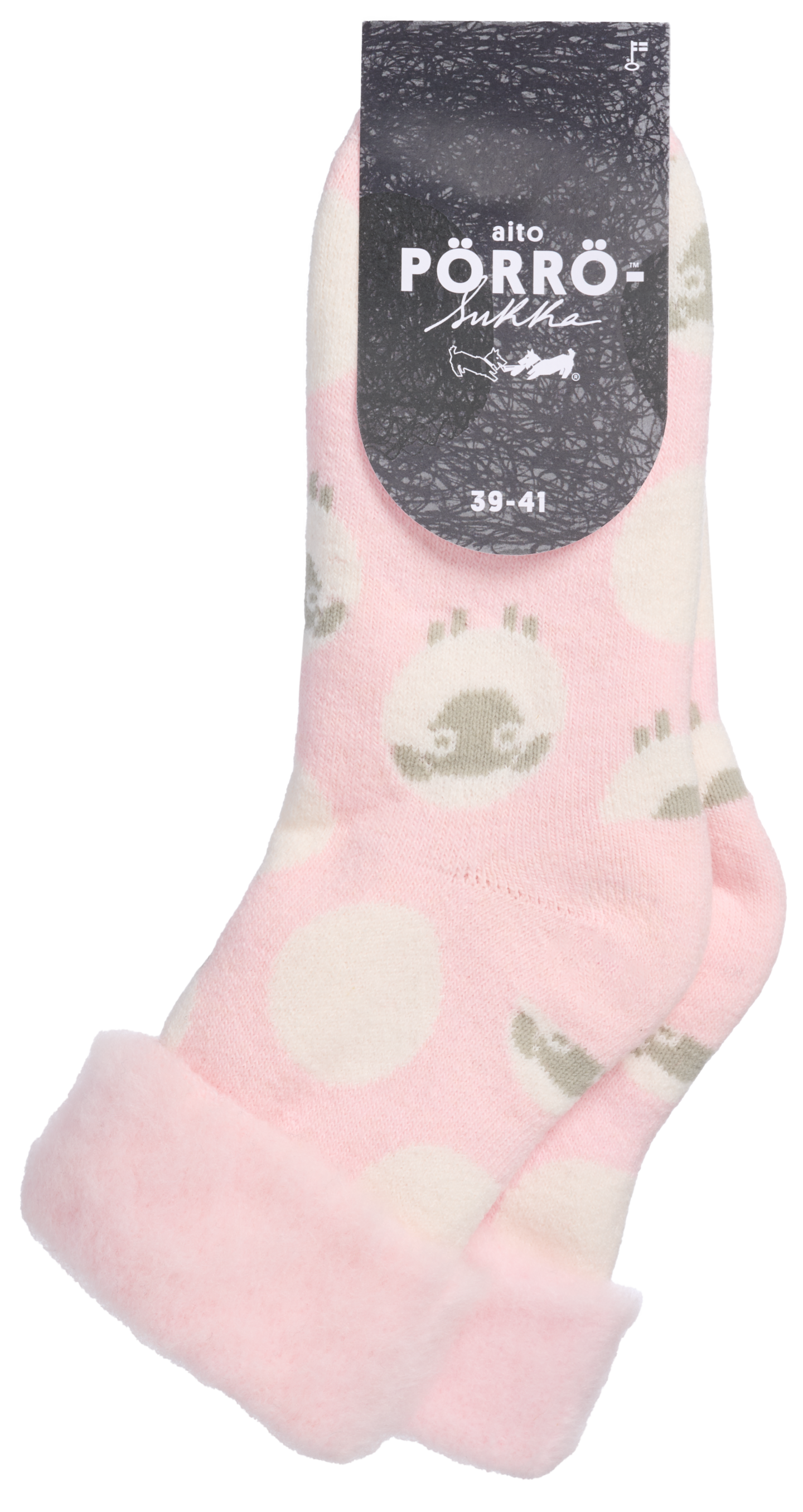 Sidoste naisten aito ja alkuperäinen, lämmin ja pehmeä perinteinen kuviollinen Pörrösukka® . Sukkien muhkea ja ylellisen pehmeä rakenne syntyy edelleen Tampereen tehtaalla vuosikymmenien ammattitaidolla ja kokemuksella. Varren pituus suorana 20 cm, Sukassa on valmiina käännös, jonka kanssa varren pituus 14 cm. Värit harmaa ja vaalean punainen. Materiaalit Polyakryyli 55%, Villa 25%, Polyamidi 20%.