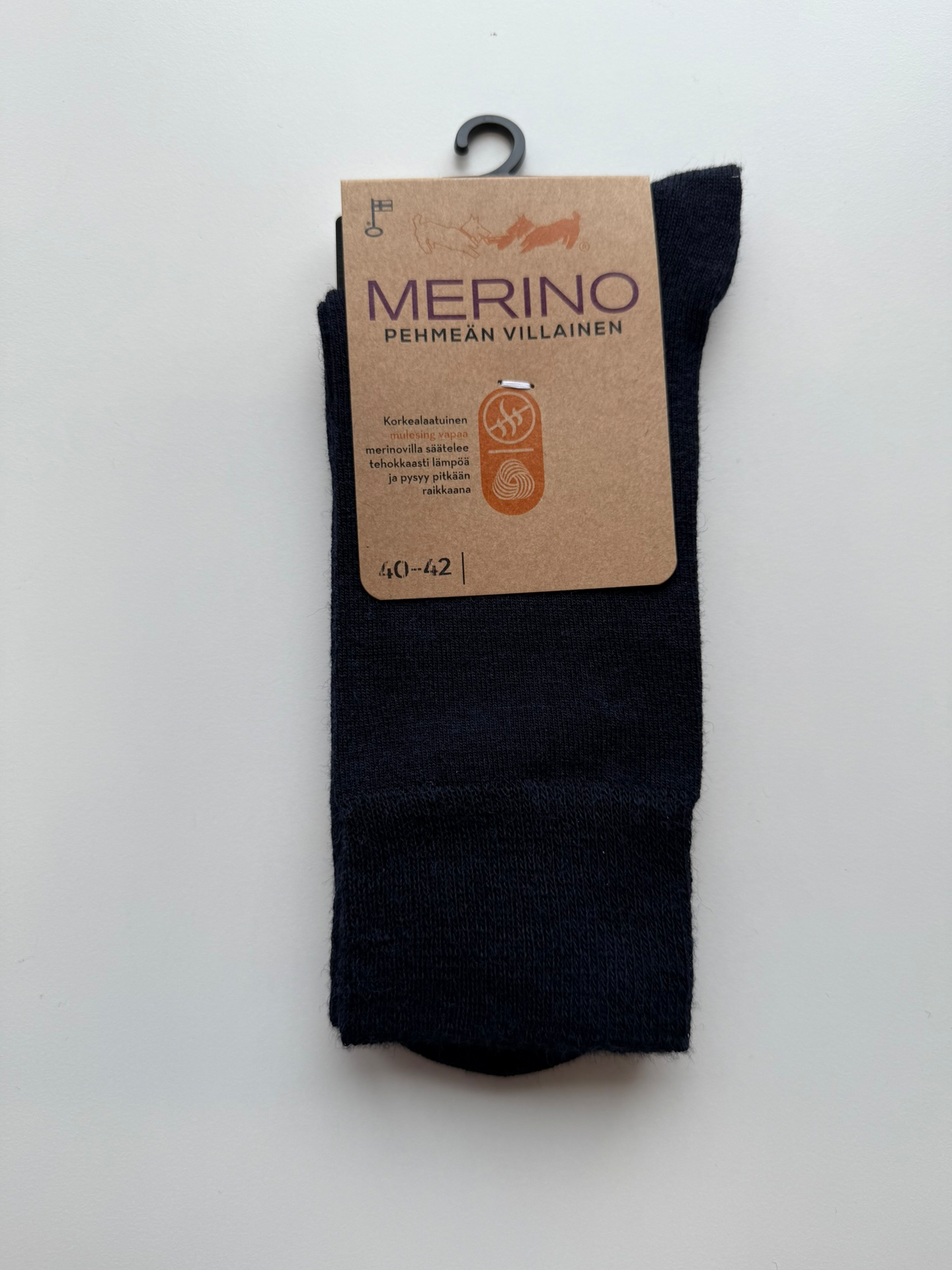 Sidoste miesten lämmin ohut merinovillasukka arkikäyttöön. Väri sininen. Varren pituus 15 cm