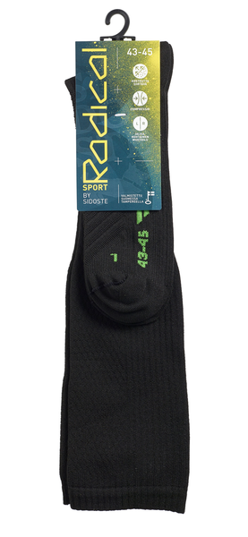 Miesten polvipituinen kompressiosukka urheiluun ja jokapäiväiseen käyttöön. Kompressiorakenne on suunniteltu edistämään jalkojen verenkiertoa ja nopeuttamaan lymfakiertoa niin urheilusuorituksen aikana kuin sen jälkeenkin. Napakan muotoilun ansiosta suorituskyky paranee ja palautuminen nopeutuu. Väri musta. Polyamidi 40%, Polypropeeni 50%, Lycra 10%.