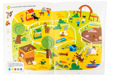 Minkä värinen on mansikkajäätelö? Entä minkä muotoinen on mustikka? Tämän puuhakirjan parissa lapsi oppii lisää väreistä, muodoista ja lukumääristä sekä muista arjen tutuista asioista. Puuhakirjan tehtävät kehittävät hienomotorisia taitoja sekä hahmotus- ja päättelykykyä. Kaikki tehtävät ratkaistaan siirtotarrojen avulla, joten tehtävät voi tehdä yhä uudelleen ja uudelleen!