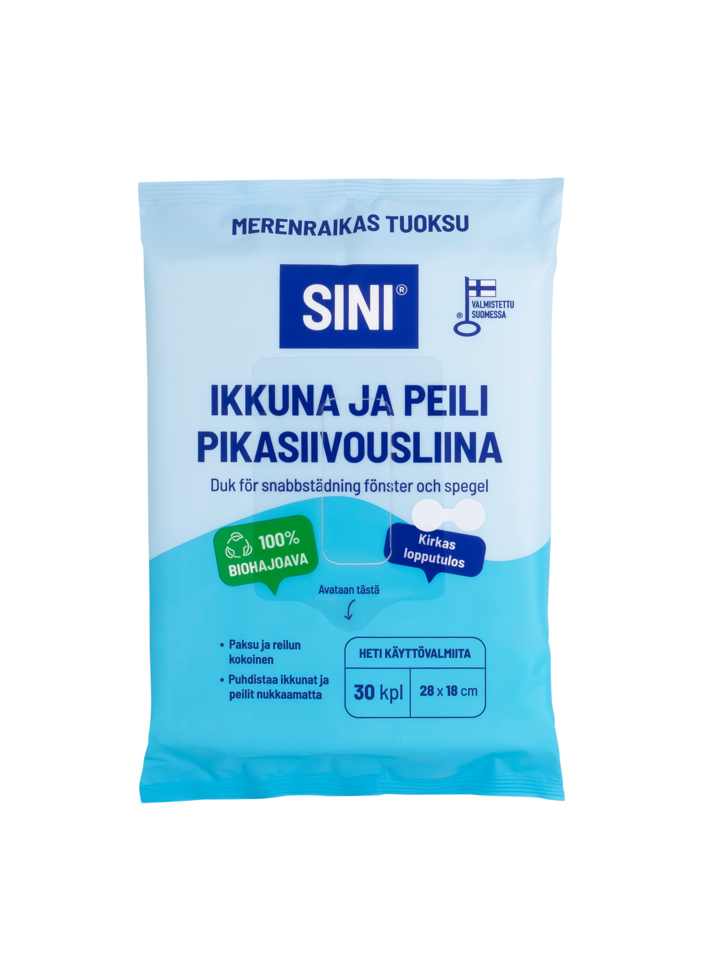 Sini ikkuna ja peili -pikasiivousliinat sopivat ikkunoiden, peilien, lasipintojen ja rosteristen kodinkoneiden pyyhintään pölystä ja tahroista.