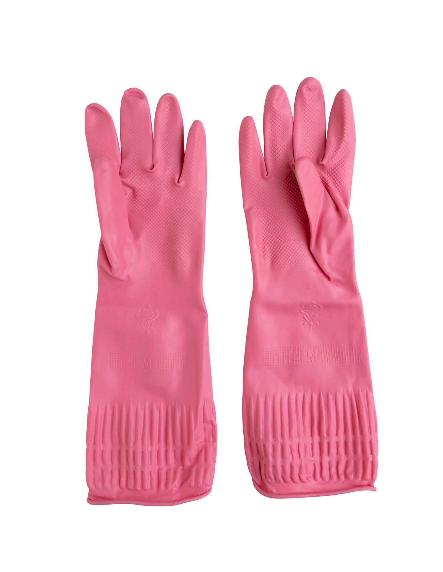 Pitkävartiset siivouskäsineet on muotoiltu anatomisesti, joten ne helppo pukea ja mukavat käyttää. Käsineen pitkä varsi suojaa myös käsivartta ja käsineen kuvioitu pinta takaa pitävän otteen. Pirteän pinkit siivouskäsineet on valmistettu lateksista ja ne on CE-hyväksytty.