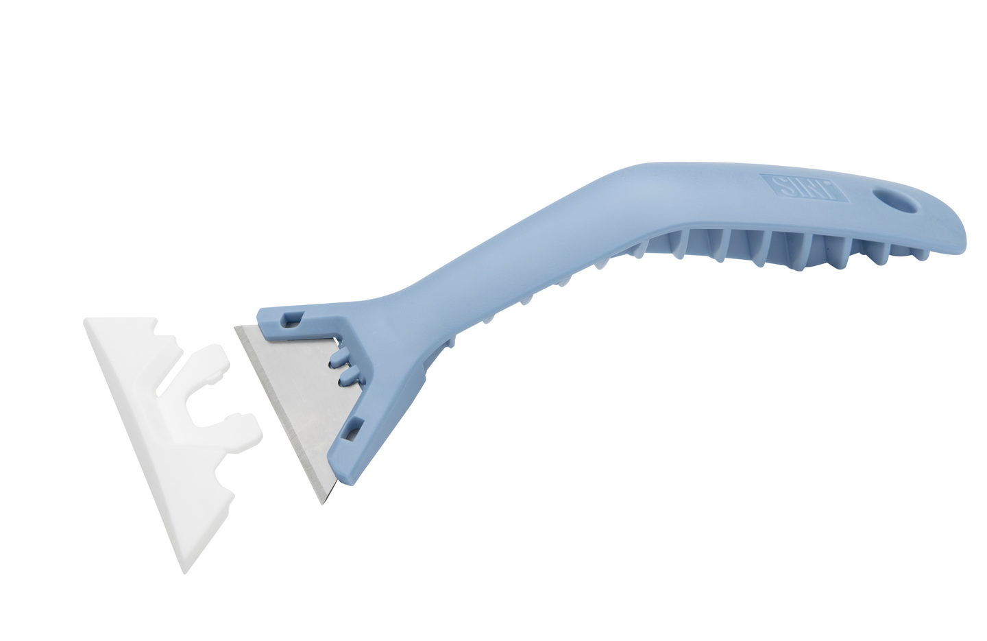 Ergonominen kahva helpottaa raaputtamaan terällä oikeassa kulmassa.