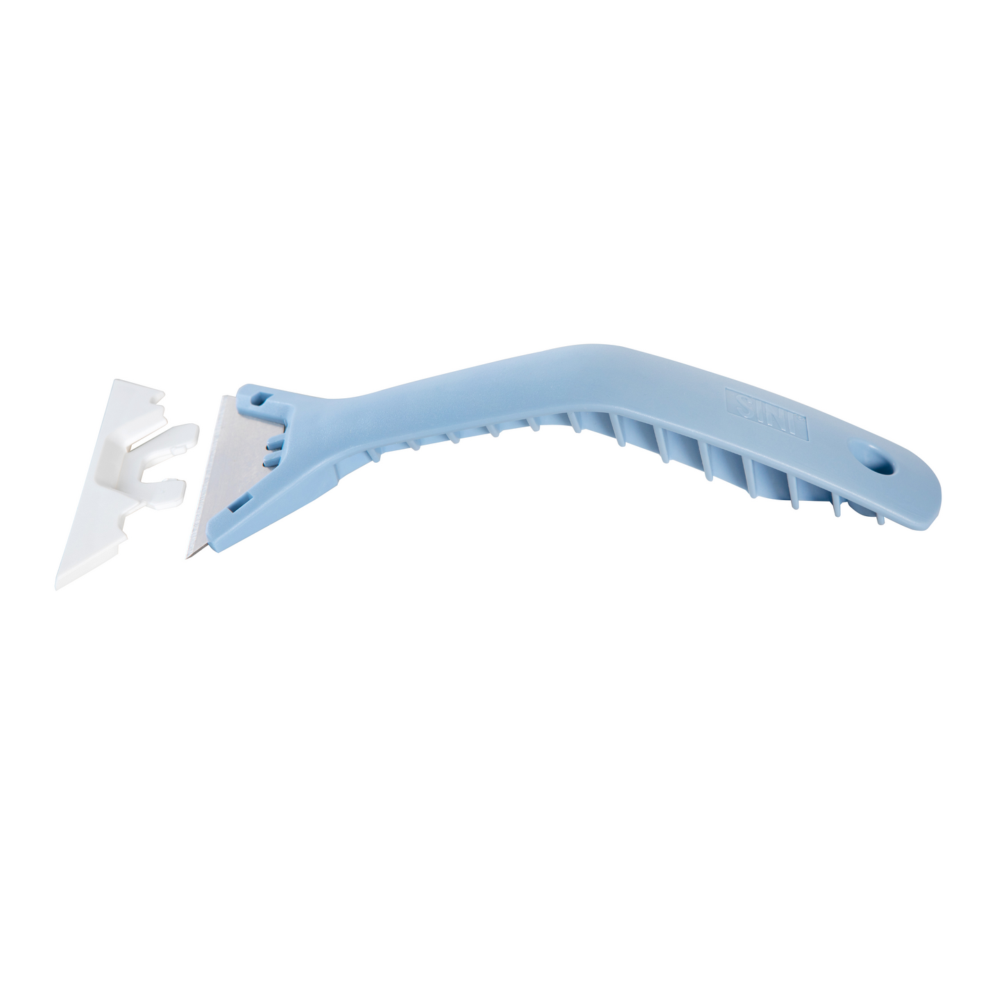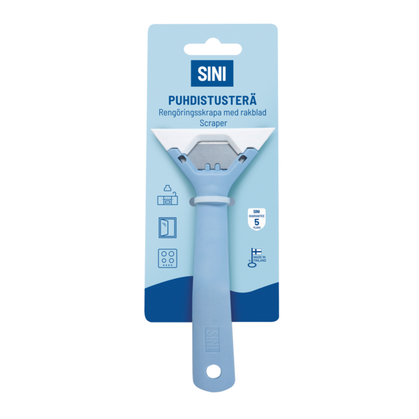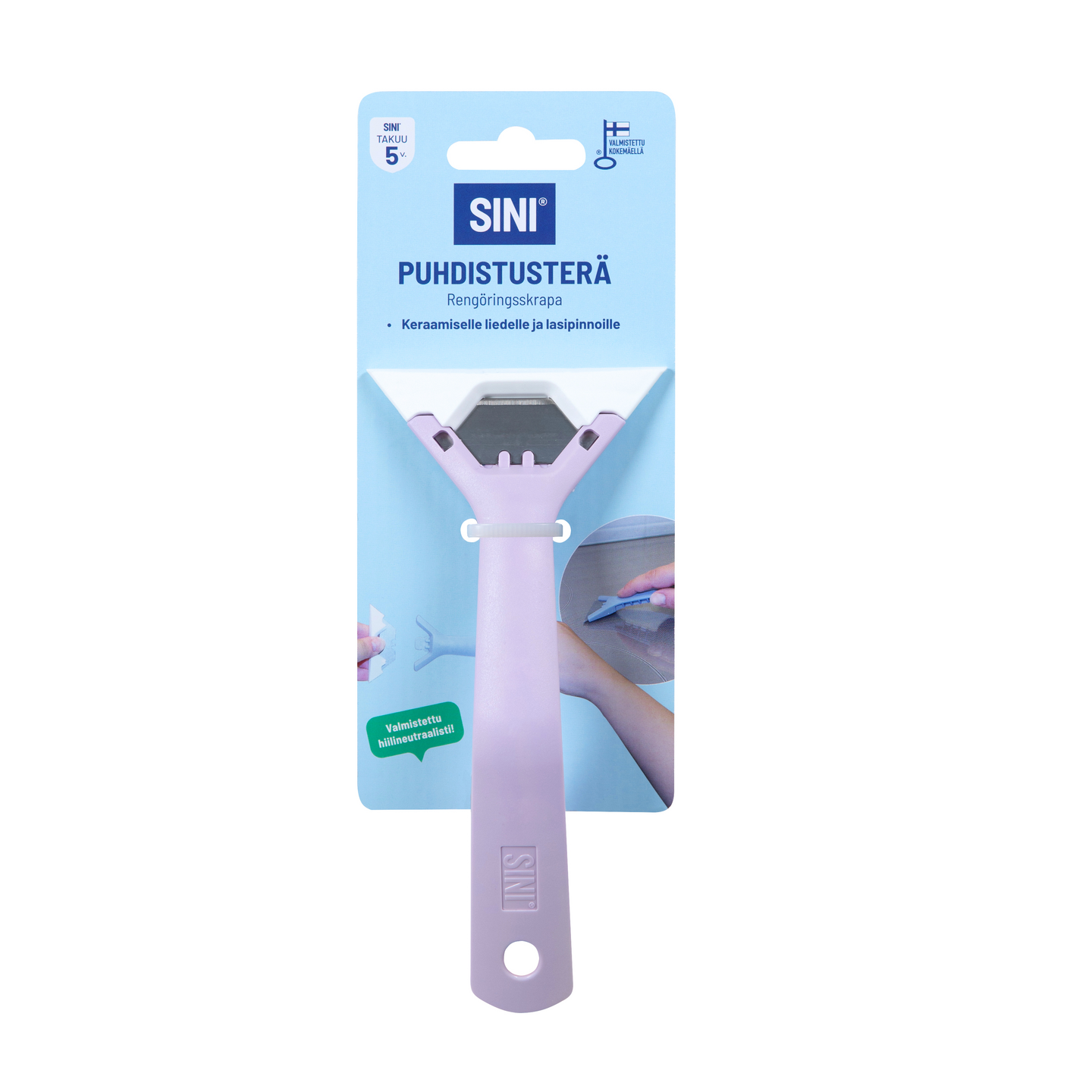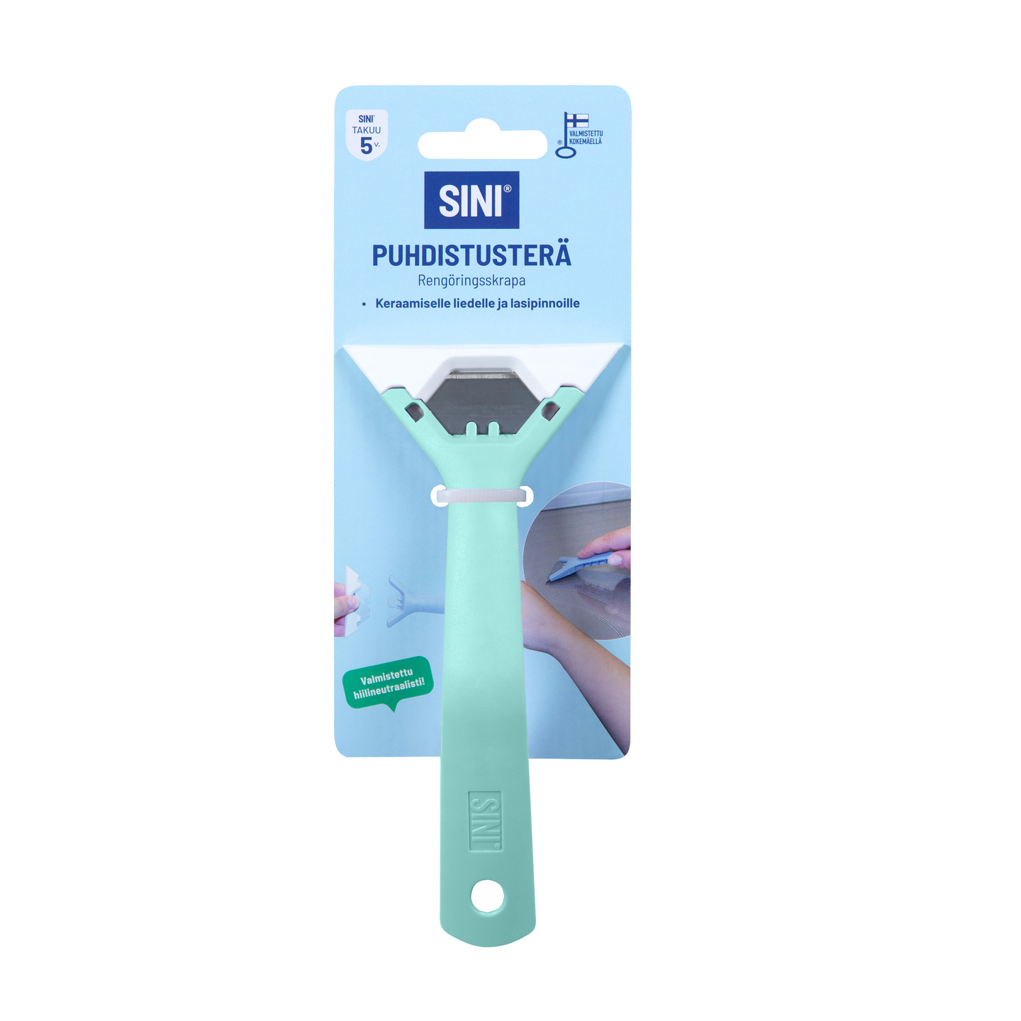 Sini puhdistusterä on keraamisen lieden ja muiden lasipintojen puhdistamiseen tarkoitettu väline.