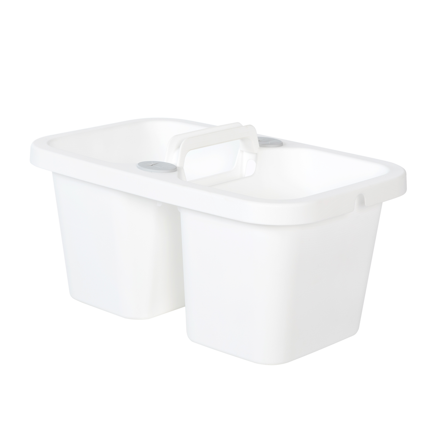 Sini Siivousapuri helpottaa siivousvälineiden ja pesuaineiden säilytystä sekä siirtelyä siivouksen aikana.