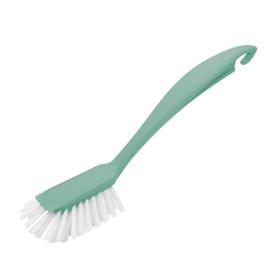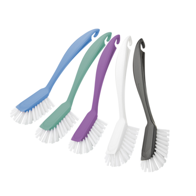 Värikkään astianpesuharjan kädensijassa on ripustuskoukku.