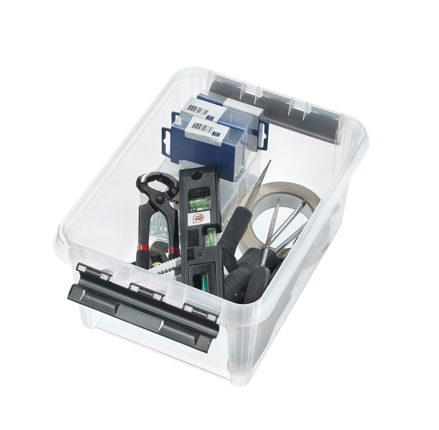 Läpinäkyvän materiaalin ansiosta laatikon sisältö on helppo nähdä.