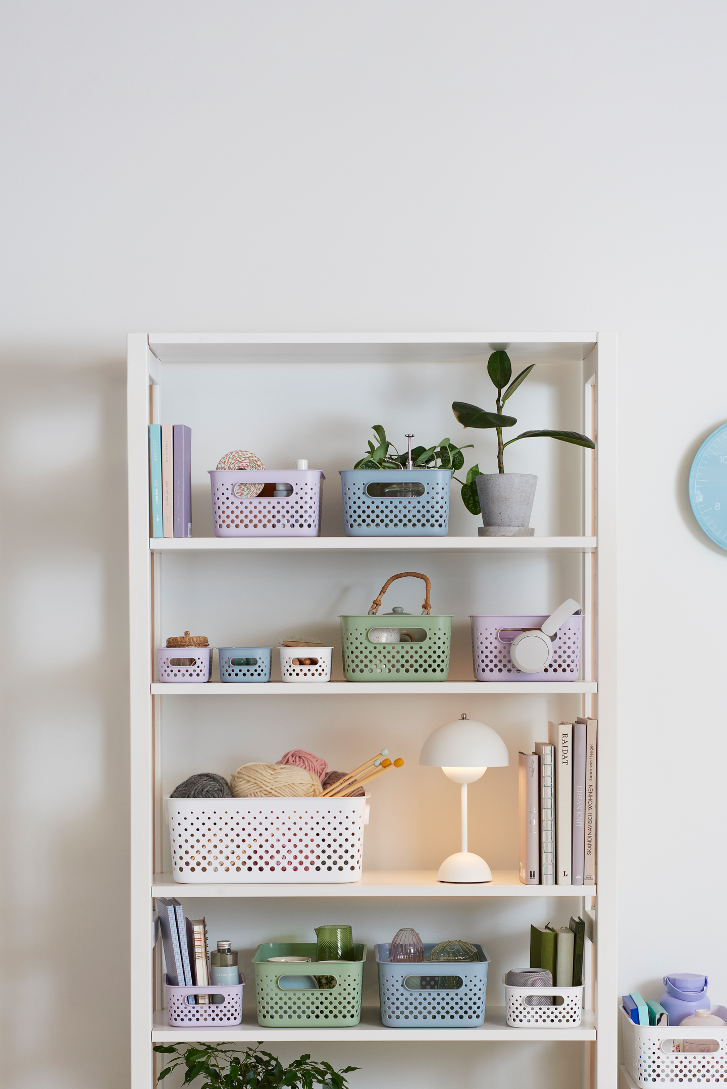 Säilytä korissa vaatteita, harrastus- ja askarteluvälineitä, toimistotarvikkeita, leluja tai muita usein käytössä olevia tavaroita.