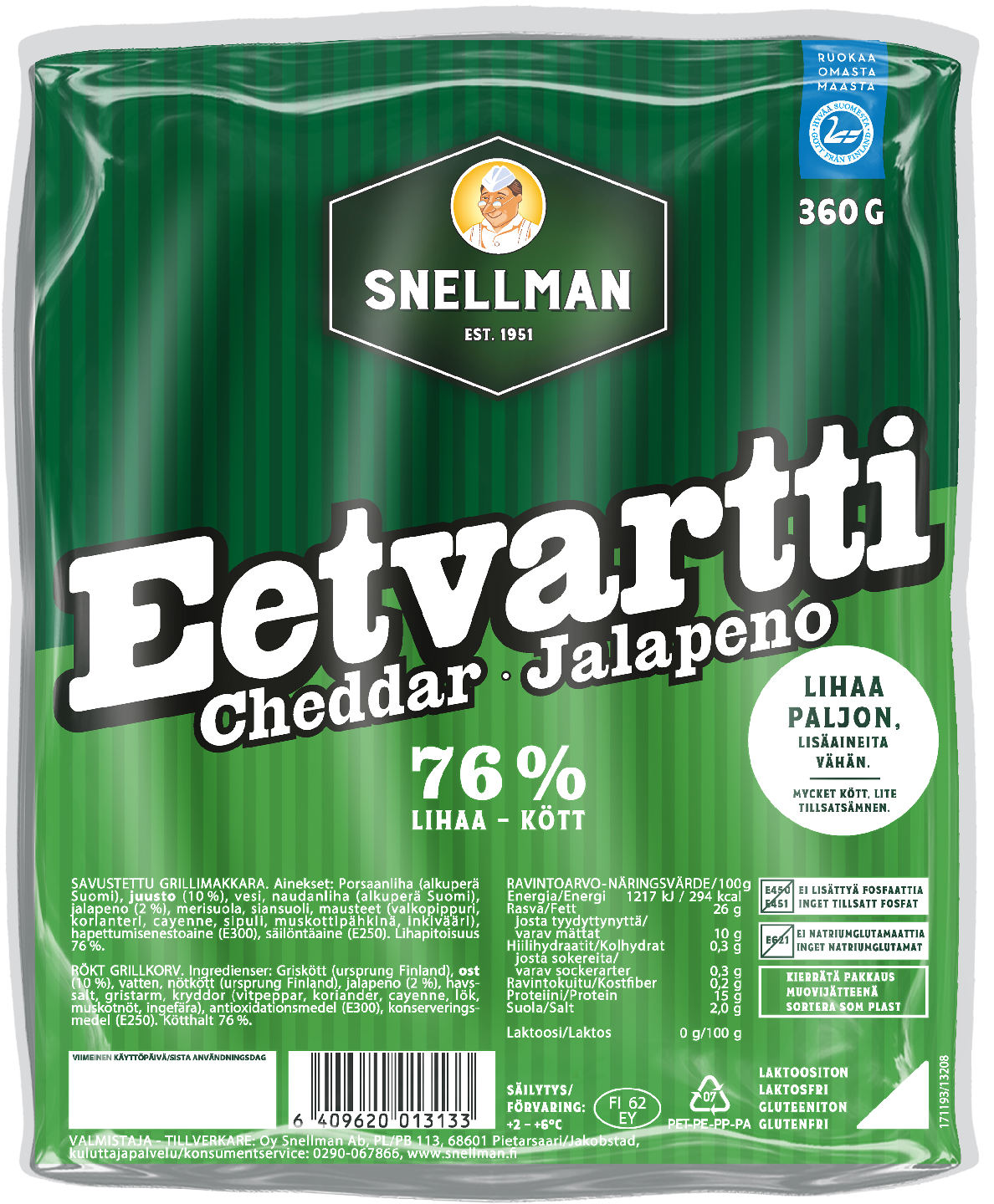 Snellman Cheddar-jalapeno Eetvartti 360g