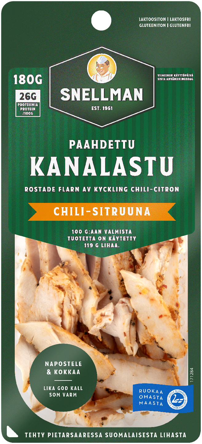 Paahdetut kanalastut paahdetaan uunissa, joka antaa lastuille paljon makua ja pintaan kauniin värin. Kotimaisesta broilerin fileistä viipaloidut lastut ovat mureita ja korkealaatuisia. Sitruunalla ja chilillä maustettu kanalastu sopii makumaailmaltaan mainiosti moniin ruokiin, mutta saattaa kadota rasiasta nopeimmin naposteltuna. Kokeile pastaan, salaattiin ja wrappiin.