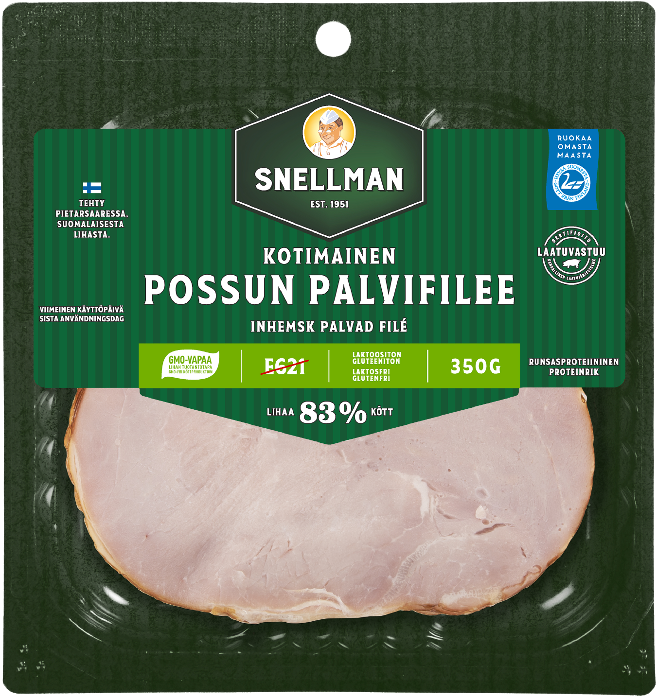 Maatiaispossun gmo-vapaasta ulkofileestä mureaksi kypsennetty ja aidosti leppäsavulla savustettu fileeleikkele. Taatusti, varmasti, 100-prosenttisesti suomalainen, Herra Snellmanin Kotimainen-sarja on luonnollinen valinta.