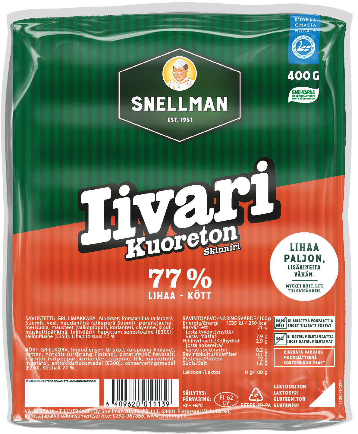 Kuorettomissa Iivari-makkaroissa on ihanan sileä rakenne ja ne sopii erinomaisesti lapsiperheille ja miksei kaikille muillekin, jotka tykkää sileärakenteisesta makkarasta, jota ei tarvitse kuoria. Grillauksen ohella nämä makkarat sopii hyvin myös arkiseen ruoanlaittoon, esimerkiksi uunimakkaroihin, keittoihin ja kastikkeisiin.