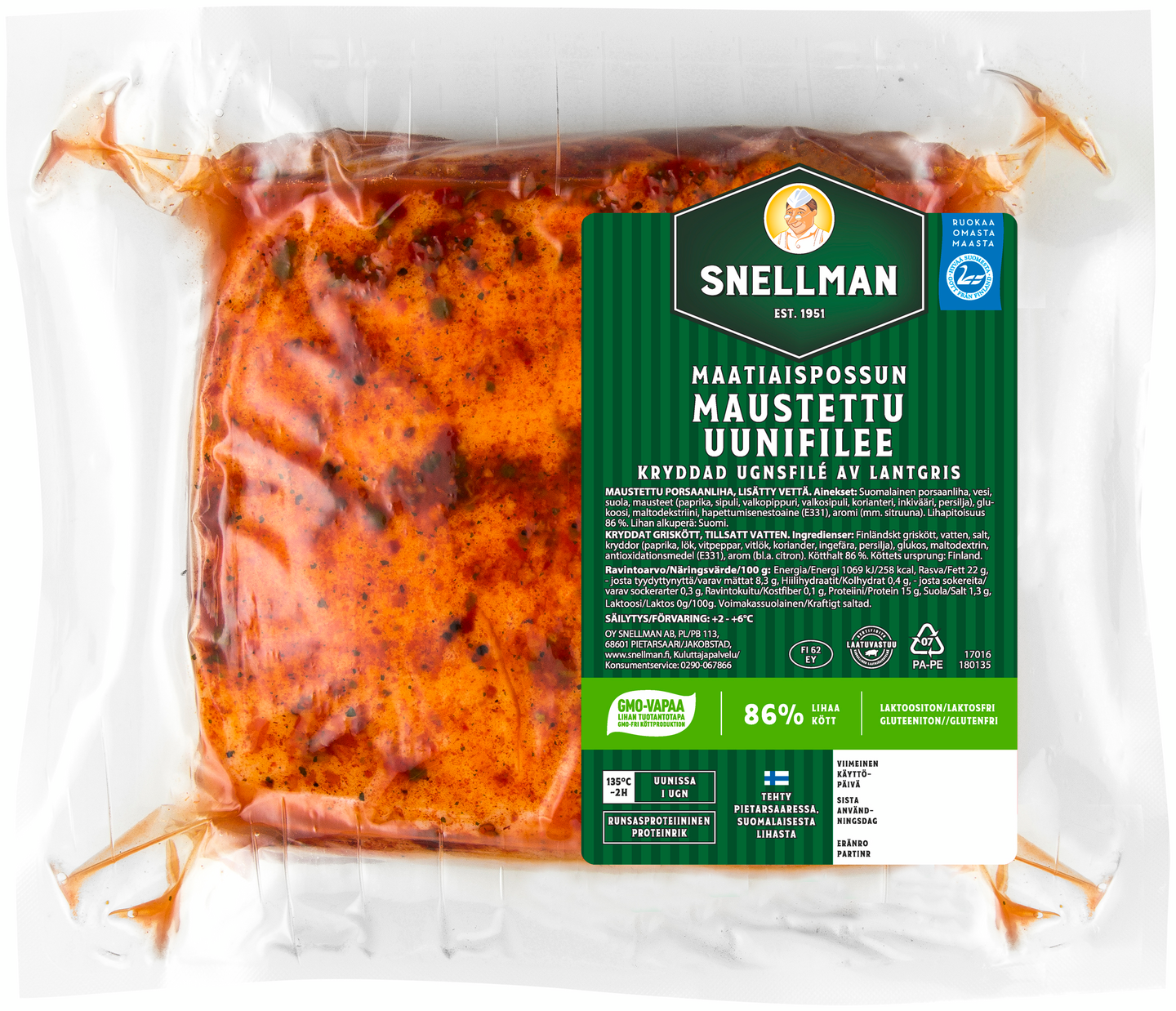 Maatiaispossun ulkofileestä tehtävä uunifilee on suolattu ja pintamaustettu valmiiksi. Fileen päälle jätetty makurasva mehevöittää mureaa ja muuten vähärasvaista lihaa paiston aikana antaen sille hyvää makua. Pakkauspaino vaihtelee noin 800-1800 g välillä. Yksittäisen tuotteen keskimääräinen paino on 1 200 g.