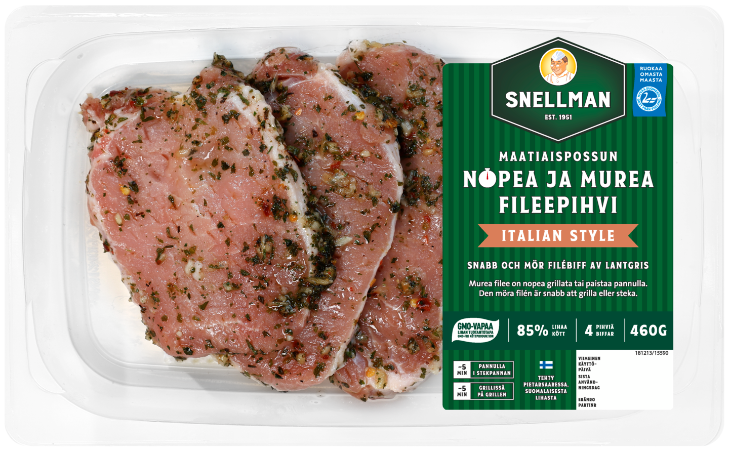 Raikkaan välimerellinen uutuus kesän grillihetkiin ja arjen helppoihin aterioihin. Italian Style -fileepihveissä maistuvat sitruuna, valkosipuli, yrtit ja mustapippuri – selkeät, tasapainoiset maut, jotka sopivat koko perheelle. Pihvit valmistetaan kotimaisesta, GMO-vapaasta maatiaispossun ulkofileestä. Ne on valmiiksi mureutettu, maustettu ja suolattu, joten onnistut helposti niin grillissä kuin pannullakin. Laadukas ja maukas valinta, kun haluat hyvän hinta-laatusuhteen ja varman lopputuloksen.