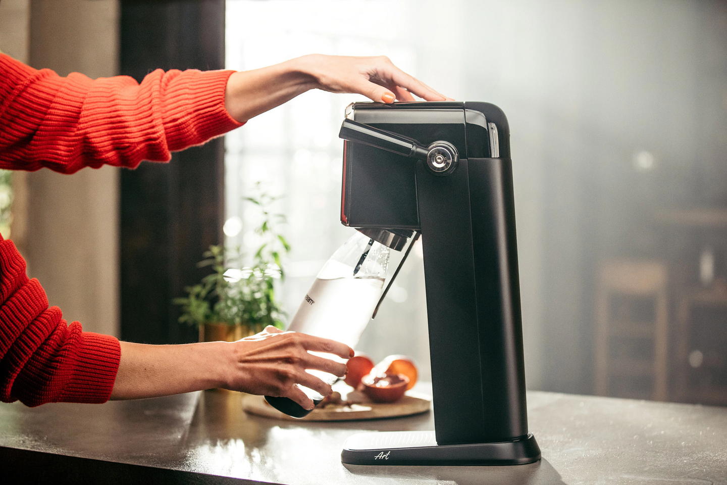 Art™ -hiilihapotuslaite, jossa on retro ulkomuoto ja helppokäyttöinen hiilihapotusvipu kuplien määrän säätelyyn.
