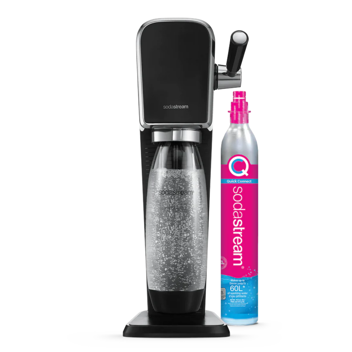 • Pakkaus sisältää: Art™ musta hiilihapotuslaite, 425 g Quick Connect-hiilidioksidisylinteri, 1 l DWS Fuse musta juomapullo, Käyttöohjeet ja Takuutodistus