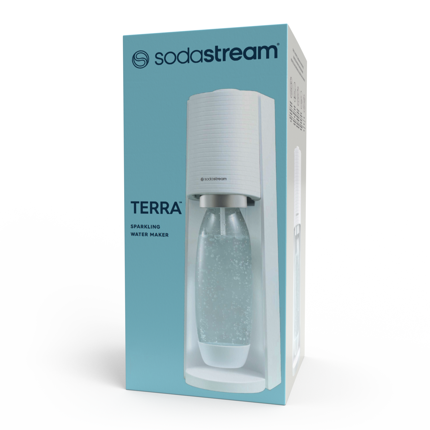 • Pakkaus sisältää: Terra™ valkoinen hiilihapotuslaite, 425 g Quick Connect -hiilidioksidisylinteri, 1 l DWS Fuse valkoinen juomapullo, Käyttöohjeet + Takuutodistus