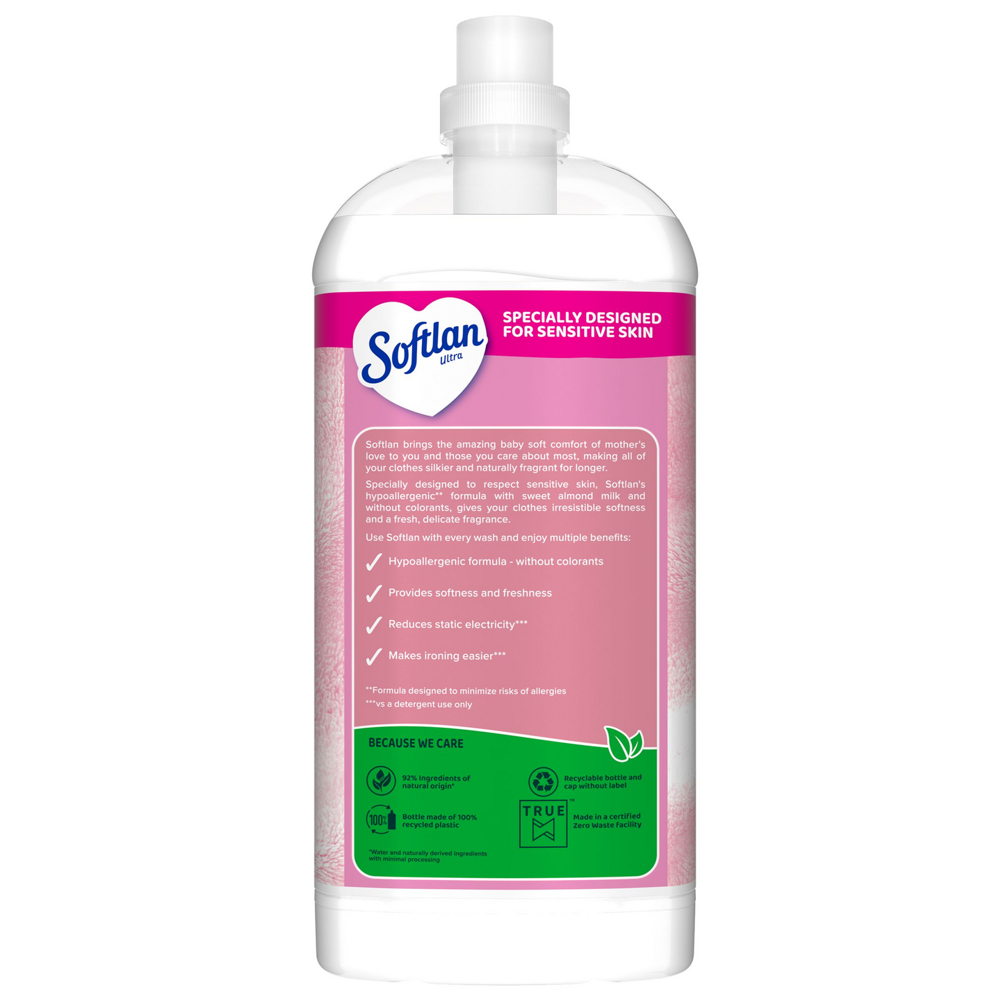 Softlan Softness & Care -huuhteluaine tekee pyykistäsi ihastuttavan pehmeää ja helppoa käsitellä, ja jättää peräänsä miedon mantelin tuoksun joka kestää vaatteissa jopa 30 päivää. Uusi 3D-tuoksuteknologiamme, jossa yhdistyy kolme eri tekniikkaa tuomaan elämyksellisen ja pitkäkestoisen tuoksukokemuksen, saa vaatteesi tuoksumaan vastapestyiltä jopa säilytyksen jälkeen. Softlan Softness & Care -huuhteluaineen väriaineeton ja dermatologisesti testattu koostumus soveltuu kaikille kankaille ja tekee pyykistäsi helpommin käsiteltävää.