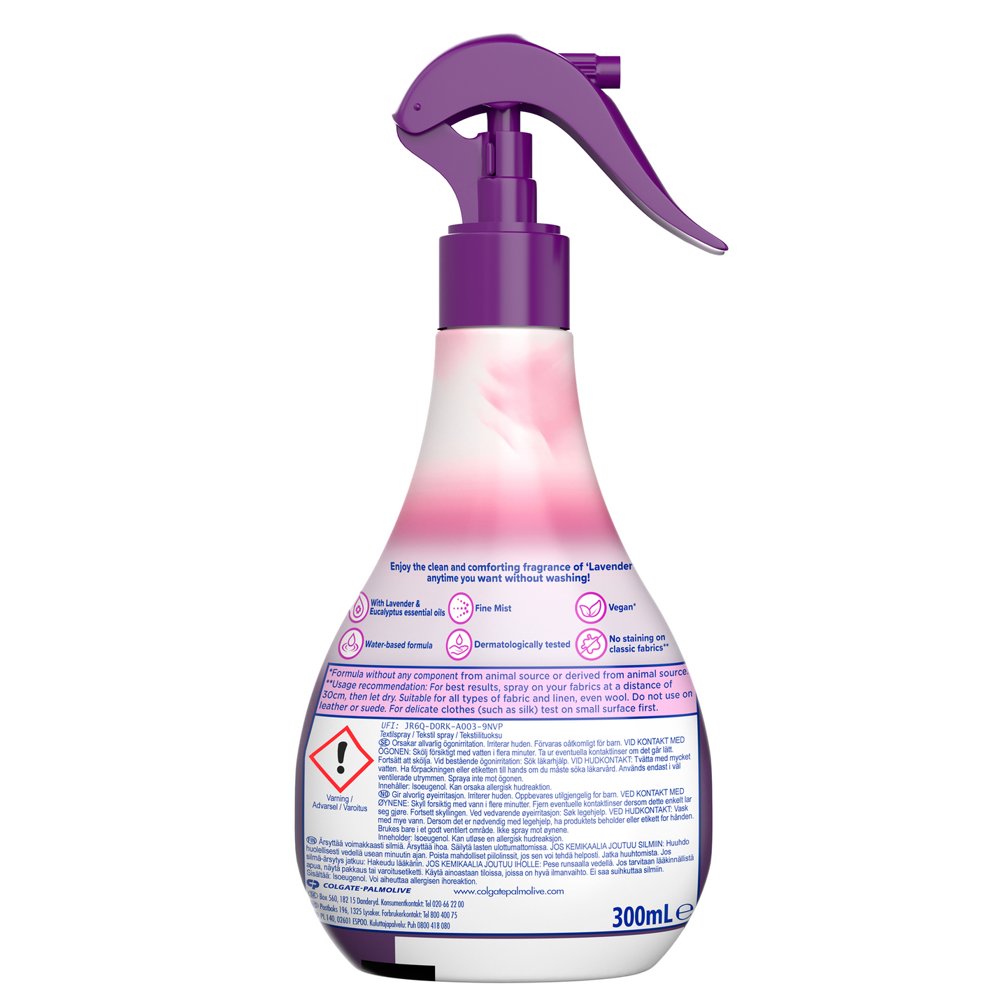 Raikasta vaatteiden ja kodin tekstiilien tuoksua Softlan Lavender -tekstiilituoksulla! Sopii synteettisille materiaaleille, pellavalle ja jopa villalle. Tuoksu muodostuu eteerisistä öljyistä, ja suihke on valmistettu vesi-pohjaiseksi, jotta se ei jätä tahroja*. Dermatologisesti testattu ja vegaaninen* koostumus. Tekstiilituoksulle sopivia kohteita ovat esimerkiksi vaatteet, huonekalut, verhot ja auton istuimet. *Tarkista materiaali ennen käyttöä - ei sovi nahalle tai mokalle. Erittäin hienojen kankaiden (kuten silkin) kohdalla kokeile tuotetta ensin pienelle, huomaamattomalle alueelle.