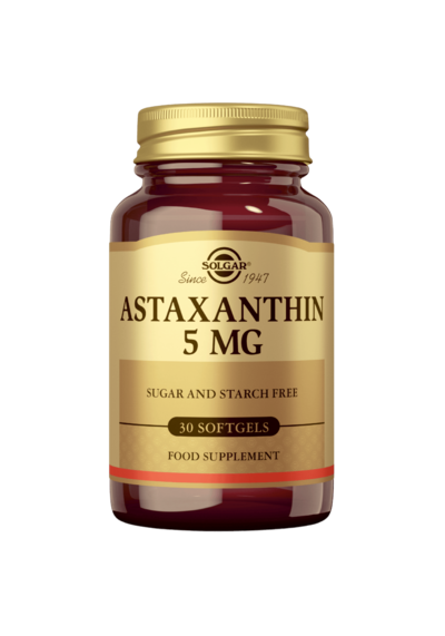 Solgar® Astaxanthin 5 mg sisältää Haematococcus Pluvialis -levälajikkeestä peräisin olevaa astaksantiinia. Mikrolevät tuottavat astaksantiinia suojautuakseen auringon UV-säteiltä.