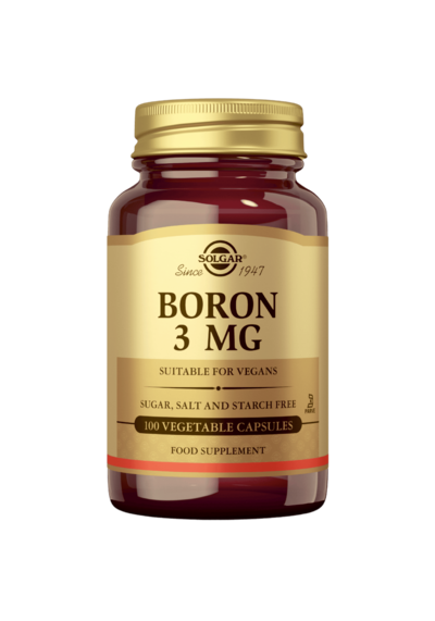 Boori on mineraali, jota löytyy luontaisesti hedelmistä ja kasviksista, kuten omenoista, viinirypäleistä, luumuista, mansikoista, avokadoista ja parsakaaleista. Myös juomavesi voi sisältää pieniä määriä booria. Booria esiintyy luontaisesti mm. luustossa ja nivelissä ja se osallistuu kalsiumin ja magnesiumin aineenvaihduntaan. Boori on tärkeä mineraali luustostaan hyvää huolta pitävälle. Boori on tärkeä erityisesti niille, joiden ruokavalio on rajoittunut. Yksi Solgar® Boron-kapseli sisältää 3 mg booria.