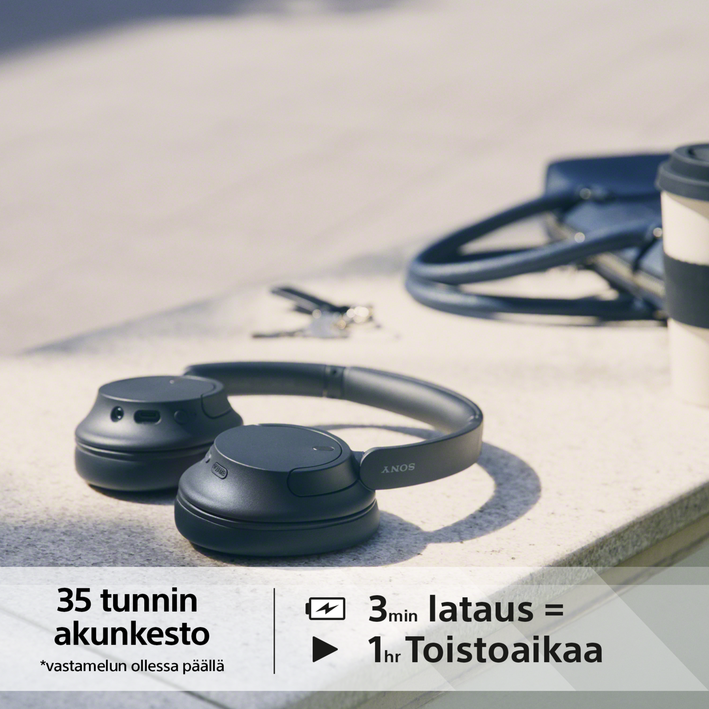 Kun työskentelet kotona tai rentoudut lempisisältösi parissa, ergonomiset WH-CH720N-kuulokkeet ovat kevyet ja miellyttävät. Niiden akunkesto on jopa 35 tuntia, joten voit käyttää niitä pitkään ilman taukoa.