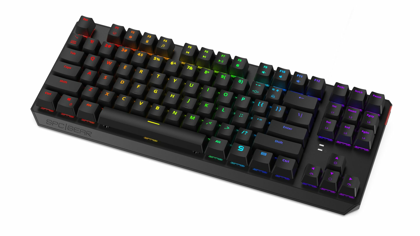 SPC Gear GK630K Tournament Kailh RGB on kompakti TKL-näppäimistö pelaajille. Kiitos näppäimistön pienen koon ja irroitettavan kaapelin, se on täydellinen kotiin ja LAN-turnauksiin. Nopeat ja tarkat mekaaniset Kailh -kytkimet antavat sie edun pelatessa. Kailh -kytkimet kestävät jopa 50 miljoonaa painallusta ja siinä on N-Key rollover -ominaisuus, joten painallukset eivät mene ohi vaikka painaisit useita näppäimiä kerrallaan. GK630K on vahvistettu alumiinisella päälliosalla, joka tekee siitä todella kestävän käytössä. RGB-valaistussa näppäimistössä on 18 ennaltamääriteltyä efektiä, joilla voit konfiguroida valaistusta haluamallasi tavalla, halusitpa siten staattisen valaistuksen tai vaihtuvan sateenkaari-valaistuksen. Pystyt hallitsemaan valaistuksia SPC GEAR -ohjelmiston avulla. Takuu 24 kk.