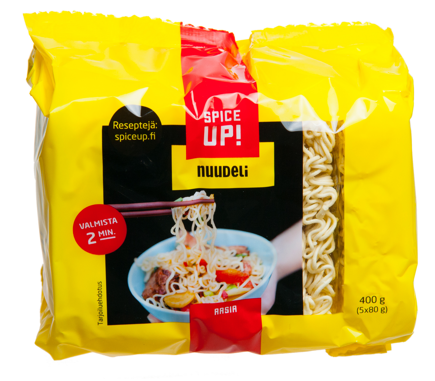 Spice Up! Nuudelit valmistuvat hetkessä. Ne sopivat keitettynä ja paistettuna lisäkkeeksi wokkeihin, keittoihin, patoihin ja salaatteihin.
