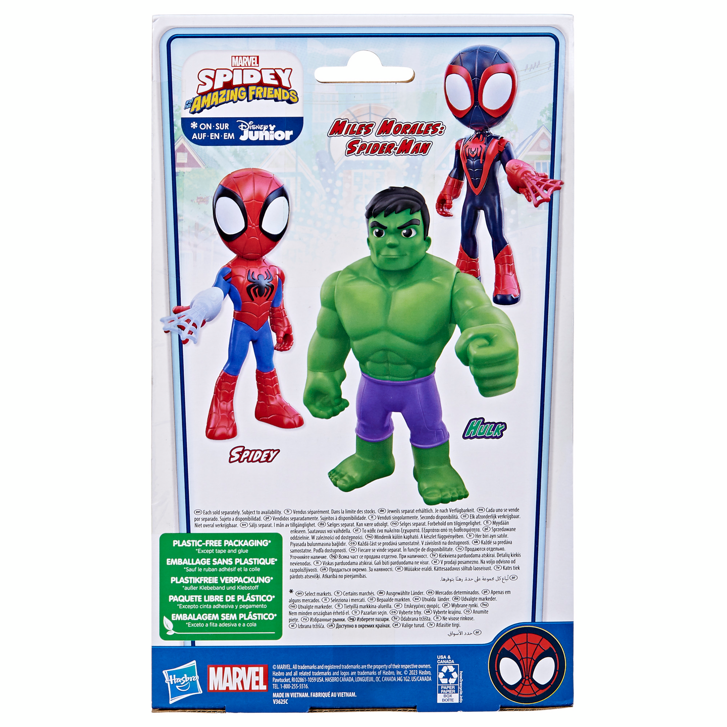 Hämis-aika! Spidey and His Amazing Friends Supersized Hulk -toimintahahmo innostaa mielikuvituksellisiin leikkeihin. Tämä 22,5 cm korkea nivelletty supersankarihahmo on iso, ystävällinen ja aina valmis leikkimään! Lapset voivat liikuttaa supersankarihahmon pään ja käsivarret hauskoihin asentoihin ja jäljitellä kouluikäistä nuoremmille suunnatun Disney Junior -Marvel-animaatiosarjan kohtauksia. Muista myös muut Supersized Spidey and Friends -hahmot ja täydennä kokoelmasi entistäkin hämismäisempää hauskanpitoa varten! (Tuotteet myydään erikseen. Saatavuus voi vaihdella.) Nämä Hämis-lelut ovat loistava lahja 3 vuotta täyttäneille lapsille, jotka pitävät Hämis-tiimin supersankariseikkailuista. Copyright MARVEL. Kaikki tavaramerkit ja rekisteröidyt tavaramerkit ovat omistajiensa omaisuutta. Hasbro ja kaikki siihen liittyvät termit ovat Hasbron tavaramerkkejä.