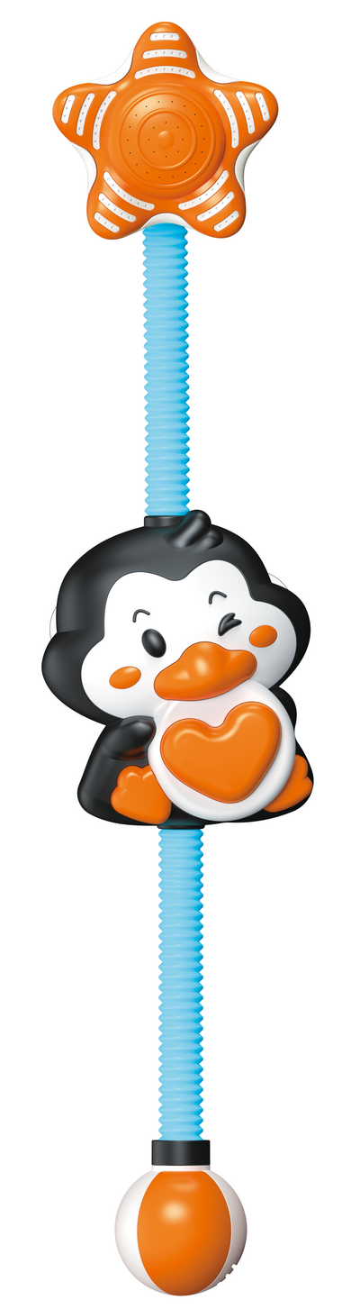 Paristokäyttöinen hauska suihkulelu imukuppikiinnikkeellä kylpyleikkeihin.Paristot 3xAA (ei sisälly).