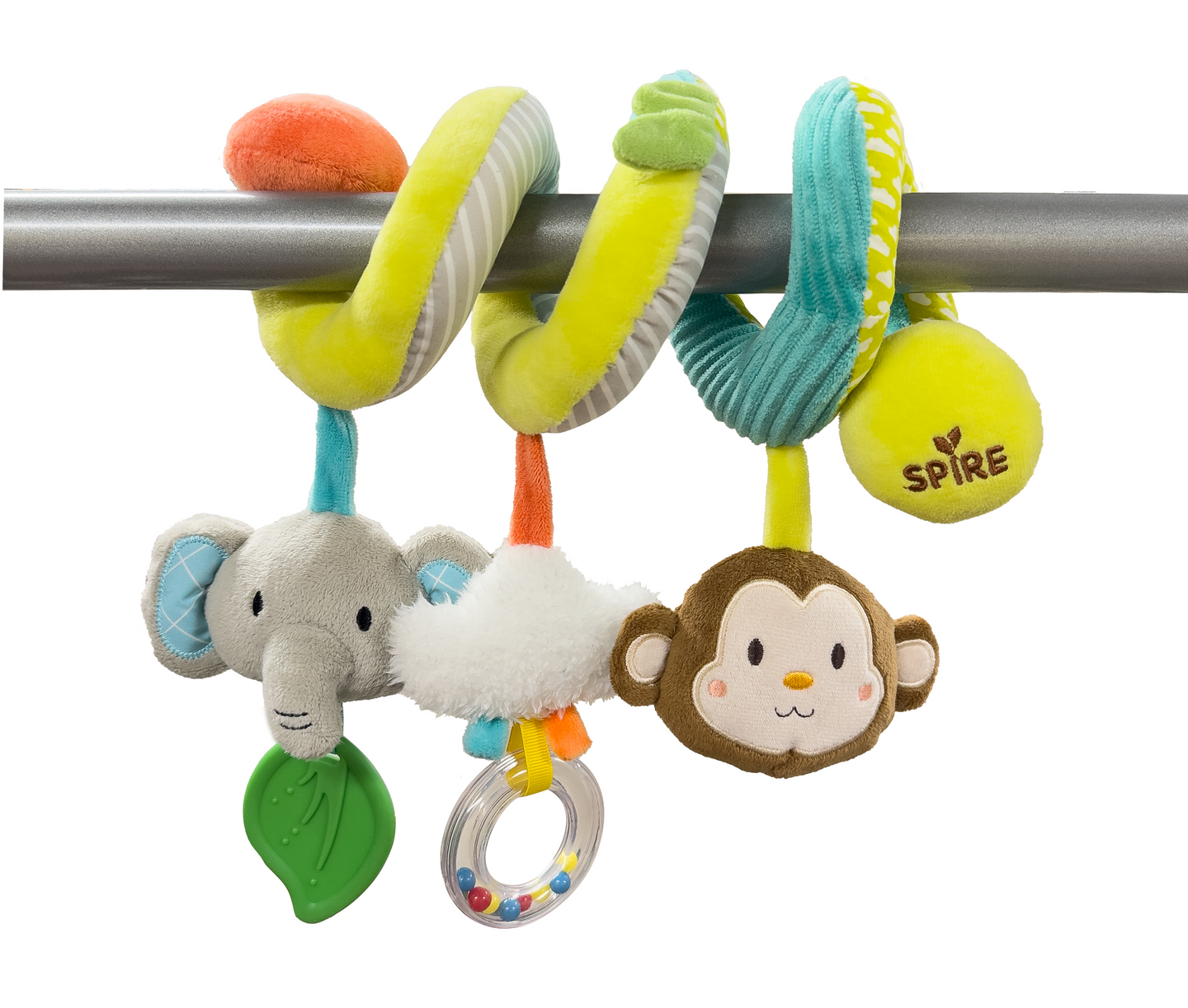 Kiva helistinlelu, jonka voi kiinnittää rattaisiin tai autonistuimeen.