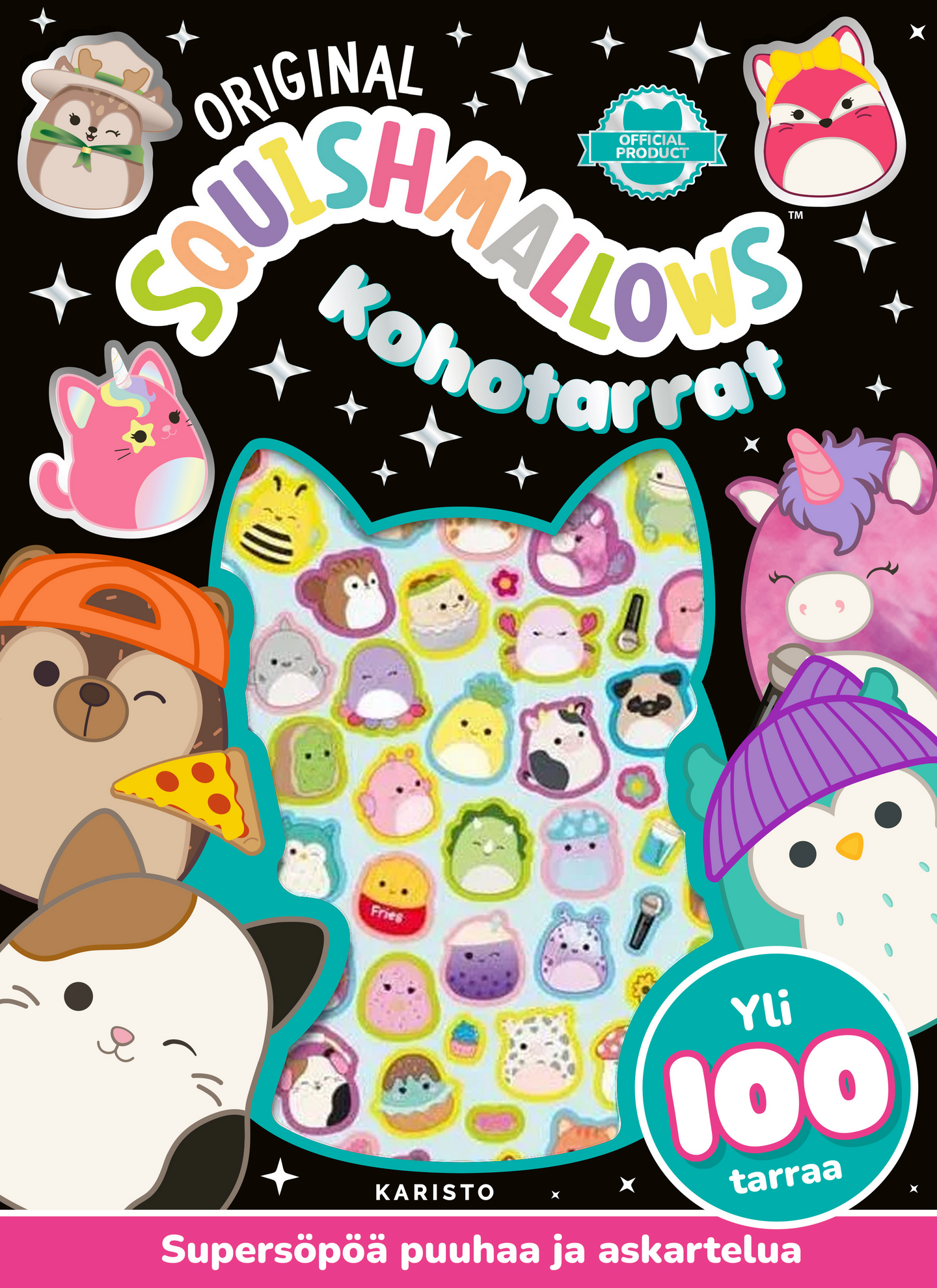Tässä touhukkaassa kirjassa on yli 100 kohotarraa, askartelusivuja ja supersuloisia puuhatehtäviä – kaikkea ihanaa Squishmallows-söpöilyä.