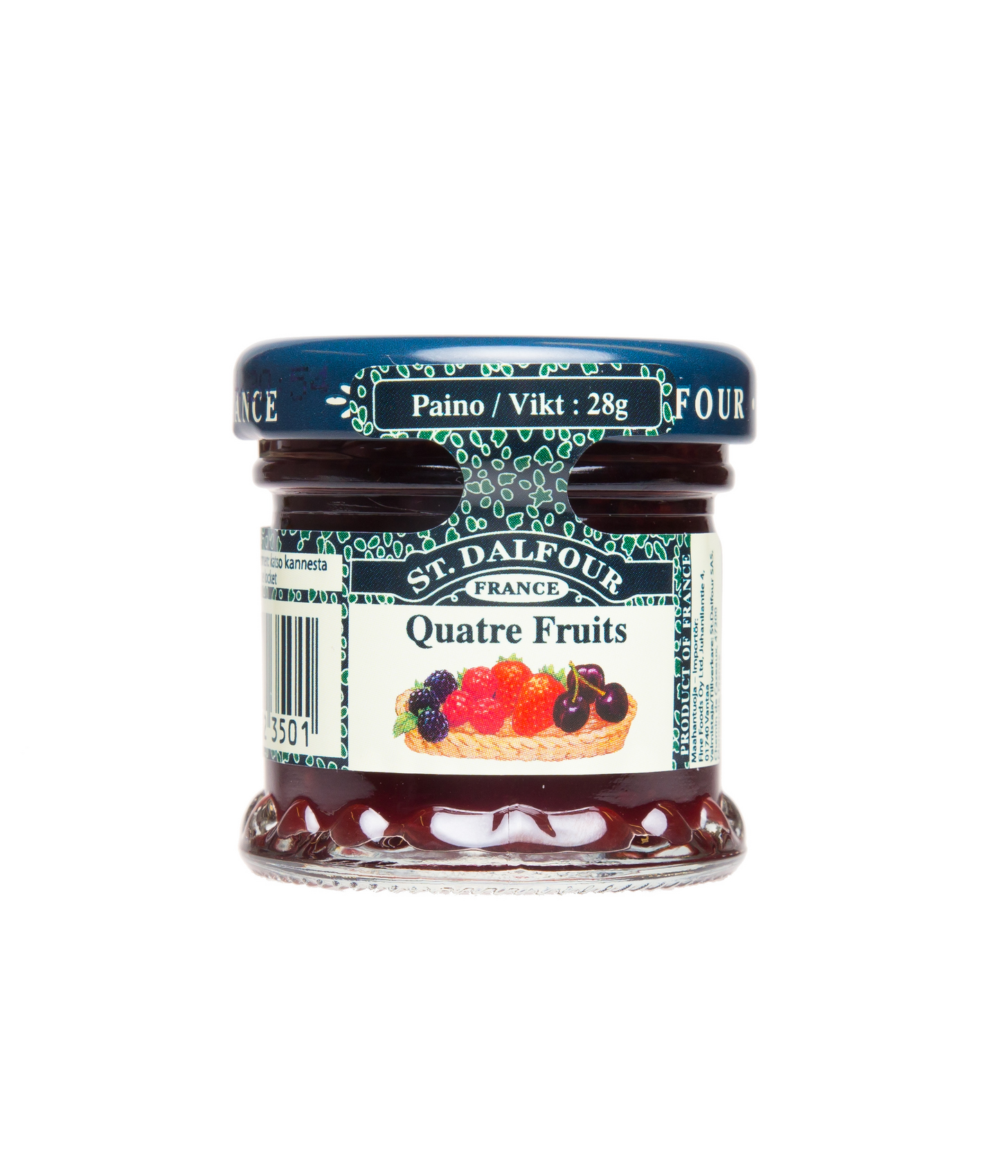 St. Dalfour hillolajitelmassa löydät neljä herkullista makua. St. Dalfour minihillot maistuvat juustojen kanssa ja aamiaisella sekä brunssilla esimerkiksi croissanttien ja skonssien kera. Kauniisti pakattu hillolajitelma on myös hyvä lahjaidea.