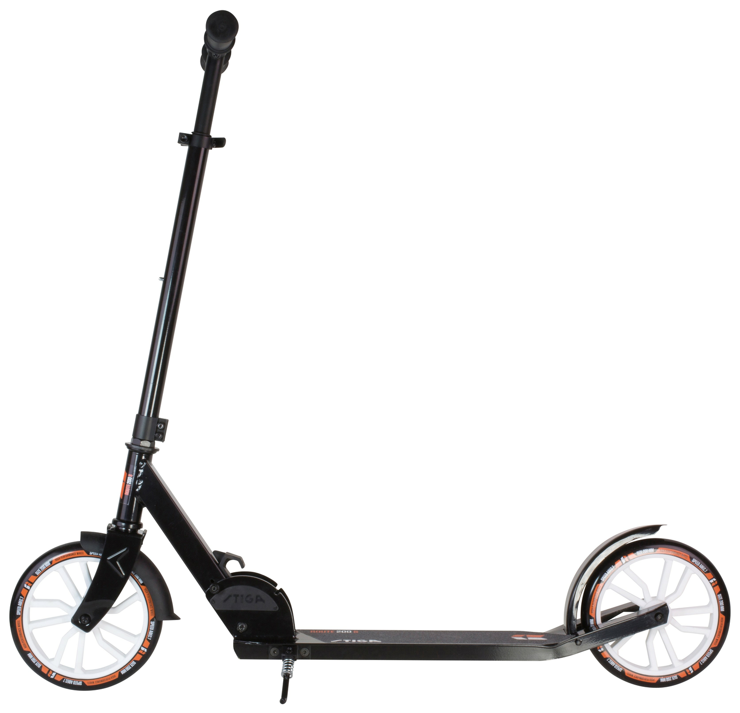 Stiga Route 200 potkulauta. Alumiini / teräs runko, taitettava. Tukeva ohjaustanko TPE gripeillä. PU valetut pyörät 200 mm. ABEC7 laakerit. Säädettävä korkeus 86-101 cm. Max. paino 100 Kg. EN 14619 standardin mukainen