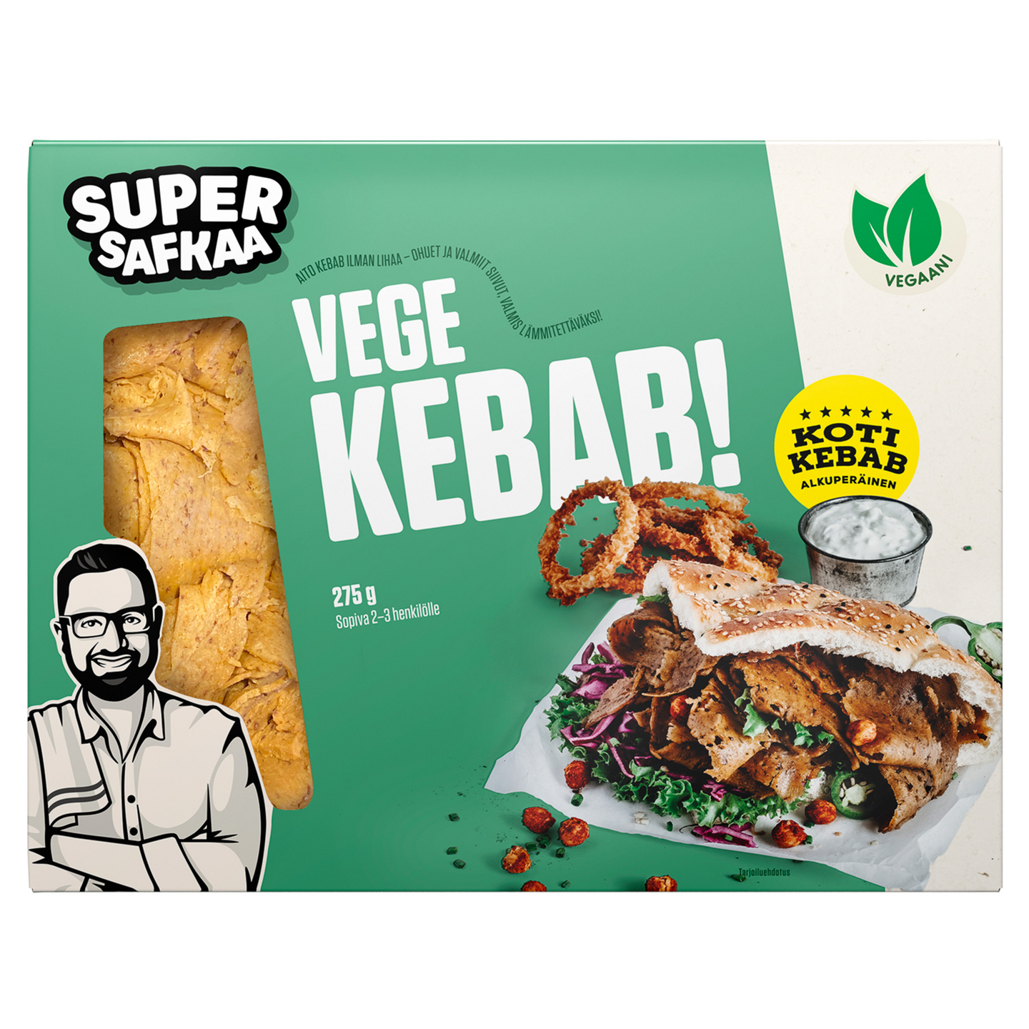 Kunnon kebabia ilman lihaa – seitanista valmistettuja ohuita vegekebabviipaleita. Tarjoile tämä vegaaninen kebab pitaleivän välissä ja lisää mausteeksi vegekebabkastike. Lopputuloksena maukas ja täysin vegaaninen pitakebab! Tuote on valmiiksi kypsä, lämmitä kebab vain paistinpannulla, uunissa tai mikrossa.