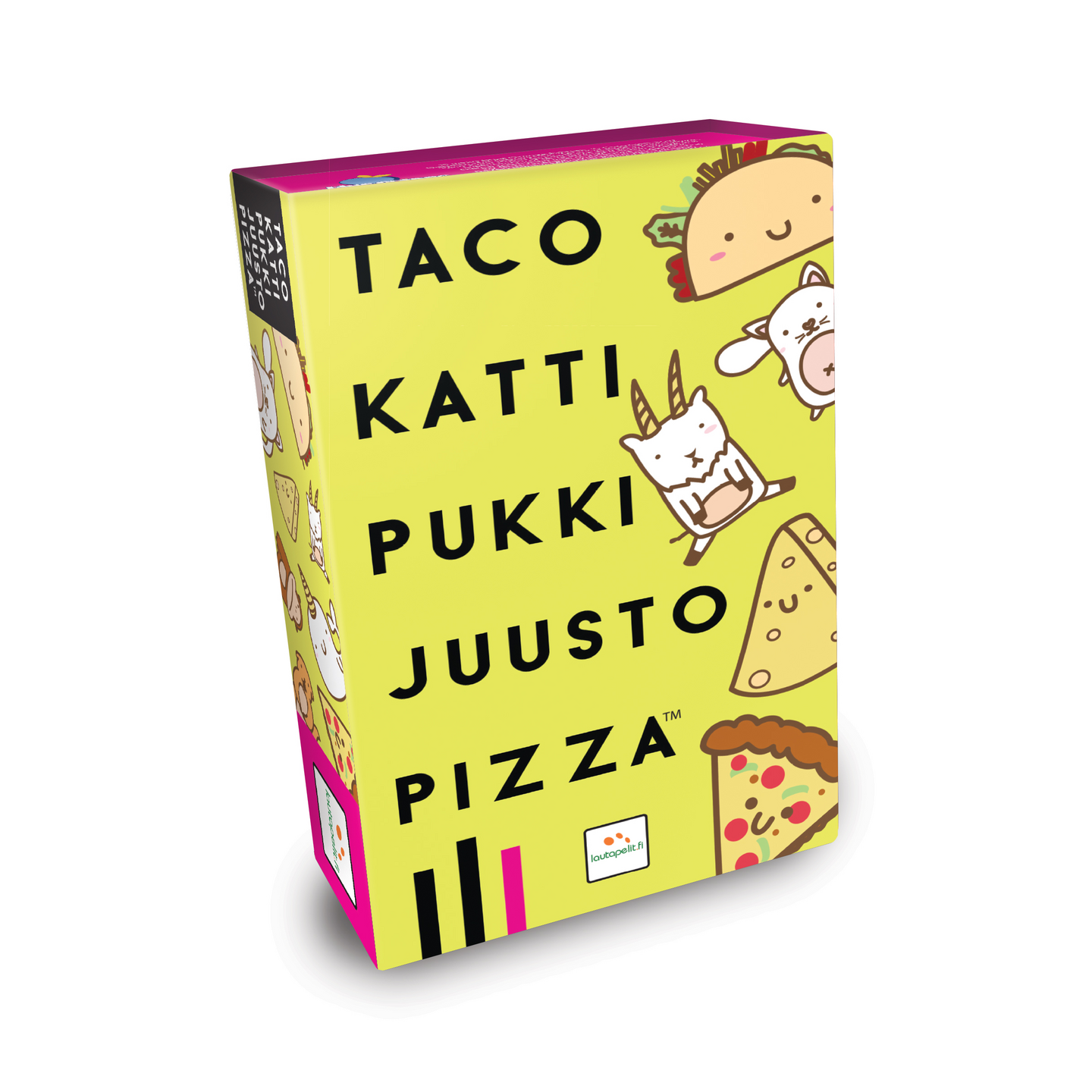 Taco Katti Pukki Juusto Pizza! Muistakaa nämä 5 hassua sanaa ja yrittäkää pysyä tahdissa! Kun pelattu kortti vastaa sanottua sanaa, läpsäiskää äkkiä pöydän keskellä olevaa korttipinoa! Viimeinen joutuu ottamaan koko pinon itselleen. Olkaa vikkeliä, niin pääsette eroon korteistanne. Pitäkää kuitenkin varanne, sillä aivot tekevät helposti tepposia. Koukuttava korttipeli, joka on yhtä erikoinen kuin nimensäkin.