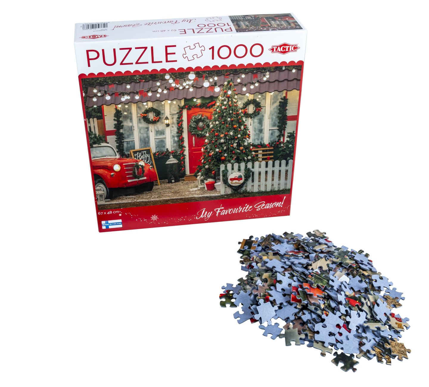 Joulupalapeli 1000 palaa, palapelin koko n. 67 x 48 cm. Valmistettu Suomessa.