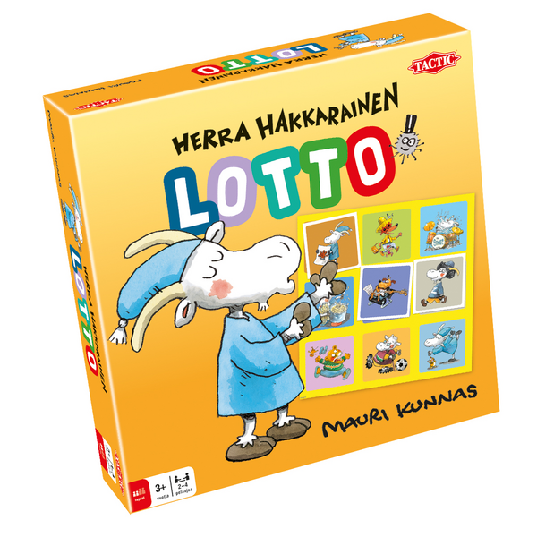 Herra Hakkaraisen maailma on täynnä värikkäitä hahmoja! Käännä vuorollasi laatta ja katso, löydätkö sitä omalta Lotto-laudaltasi. Pelaaja, joka ensimmäisenä kerää lautansa täyteen laattoja, voittaa pelin! Tämä hahmotustaitoja kehittävä peli sopii nuorimmillekin pelaajille! Hassuja hahmoja vilisevä peli opettaa lapsille kuvan tunnistusta ja helppoa pelirytmiä. Täynnä Mauri Kunnaksen rakastettuja hahmoja. Pelaajien määrä: 2-4. Pelin kesto: 15+ min.