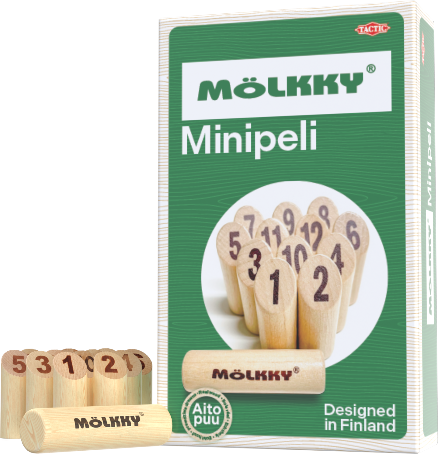 Maailmankuulu ulkopeli nyt kätevässä minikoossa. Voit pelata vaikka keittiönpöydällä. Käytä taitojasi ja onneasi kaataaksesi keilat ja saavuttaaksesi tavoitepistemäärän ensimmäisenä. Ensimmäisenä 50 pistettä saavuttanut voittaa pelin! Sisältää Mölkky® Minipeli osat, pisteblokin ja pelin kuvitetut säännöt.