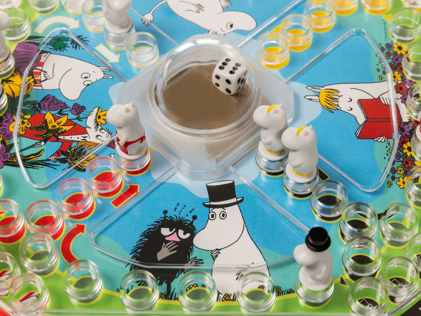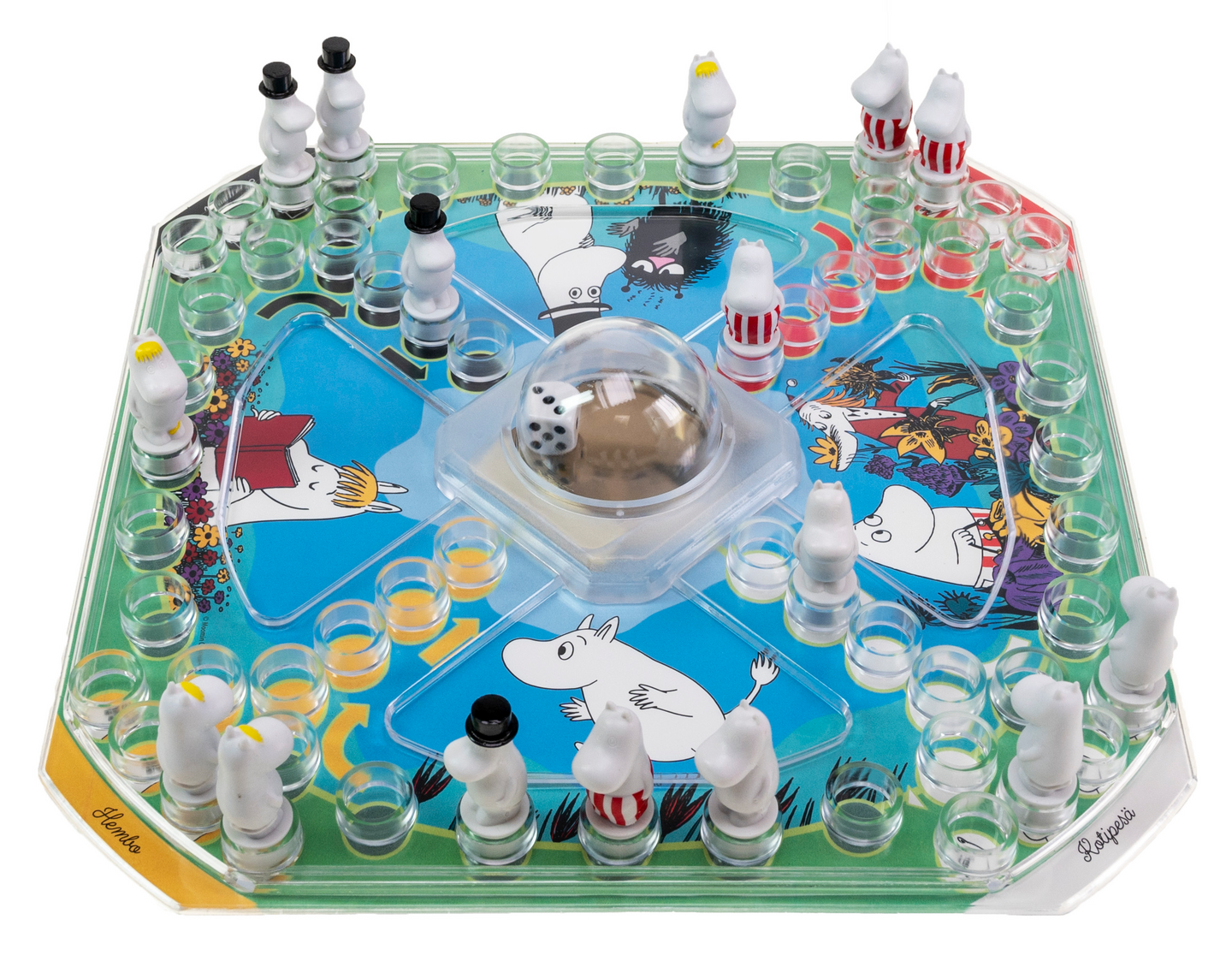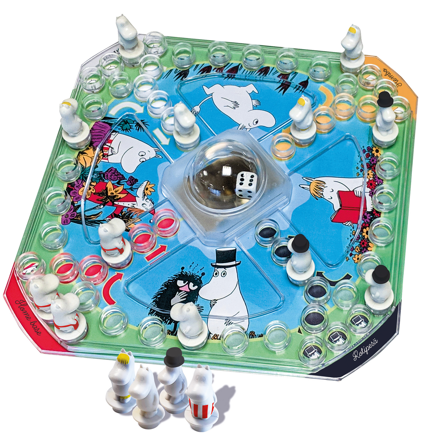 Liikuta neljä pelinappulaasi pelilaudan ympäri maaliruutuihisi! Ihana Muumi-aiheinen kuvitus. Pelaajien määrä: 2-4. Ikäsuositus: 4+ v. Pelin kesto: 20+ min.