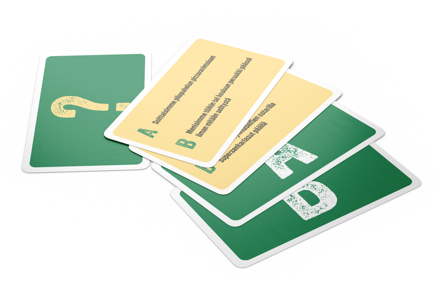 Tämä peli voitetaan yhdessä! Nostakaa kortti, jossa on kaksi kiusallista tilannetta. Ajatelkaa ryhmänä keskustelematta ääneen! Kumpaa vaihtoehtoa ryhmä välttelisi hinnalla millä hyvänsä? Paljastakaa sitten korttinne. Jos jokainen pelaaja valitsi saman vaihtoehdon, ryhmä voittaa kortin. Montako kertaa osutte yhdessä oikeaan?