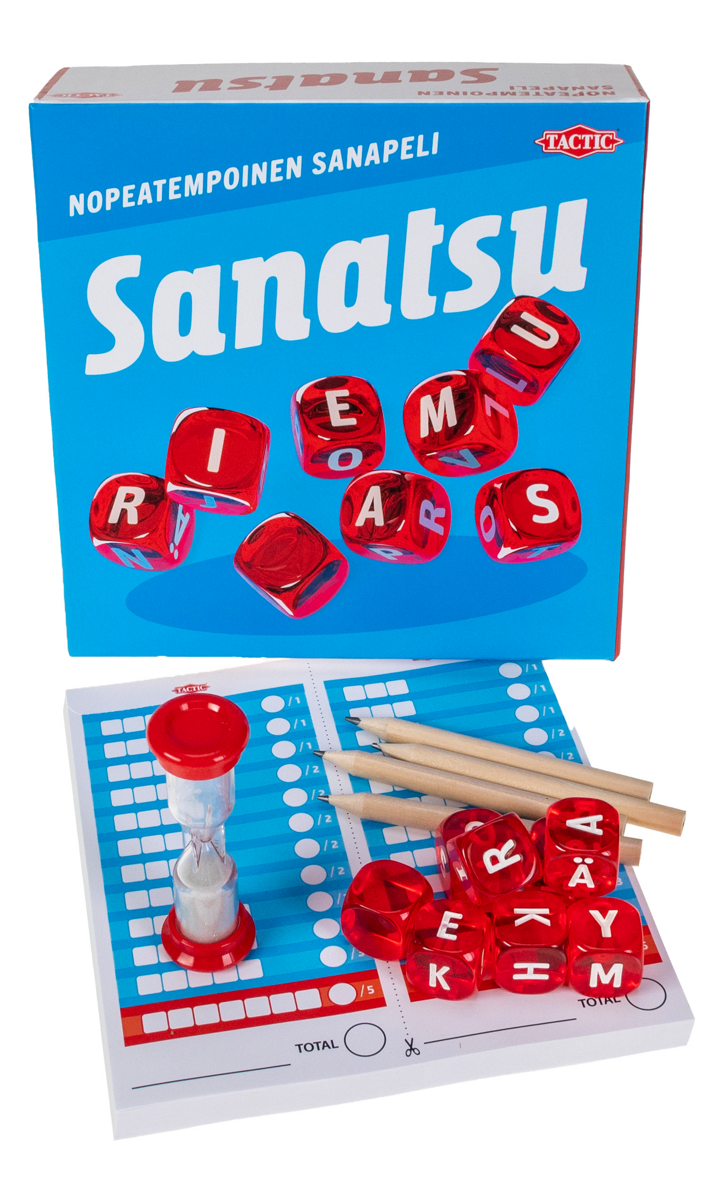 Etsi sanoja kirjainnopan avulla! Muodosta sanoja nopan kirjaimien avulla tiimalasin hiekan valuessa. Kierrettä peliin tuo se, että vastustajasi jo löytämistä sanoista et saa yhtään pisteitä! – Nopeatempoinen ja vaihtelurikas sanapeli! – Vaikeustasoa on helppo säätää.
